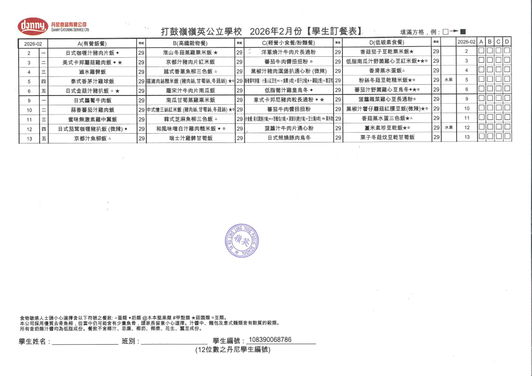 2026年2月餐單